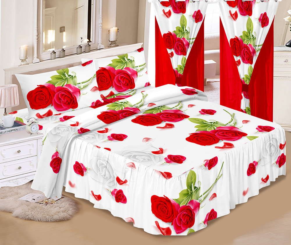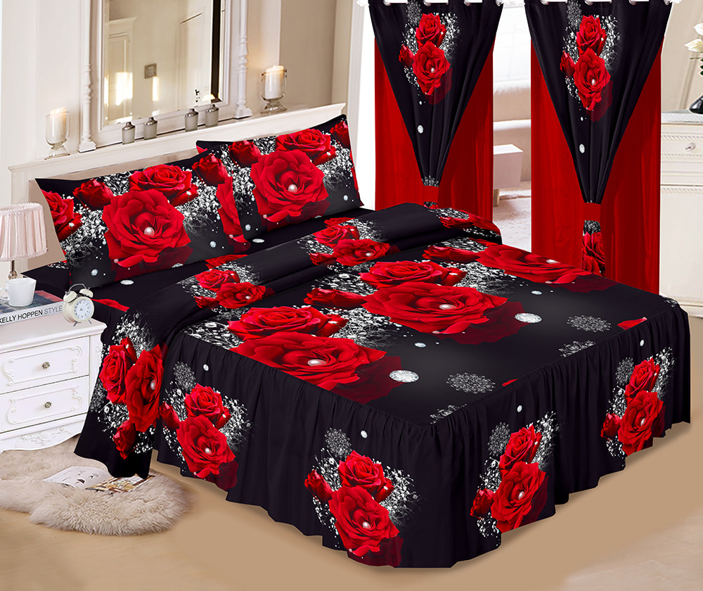 | Printed Bed Skirt 6-Piece Set with Double Curtains | BEDDING SET, PRINT BED Skirt 6PCS SET, 100% microfiber polyester, Luxury Sheet set, OEM, home textile | 100% polyester | QUEEN SIZE KING SIZE |